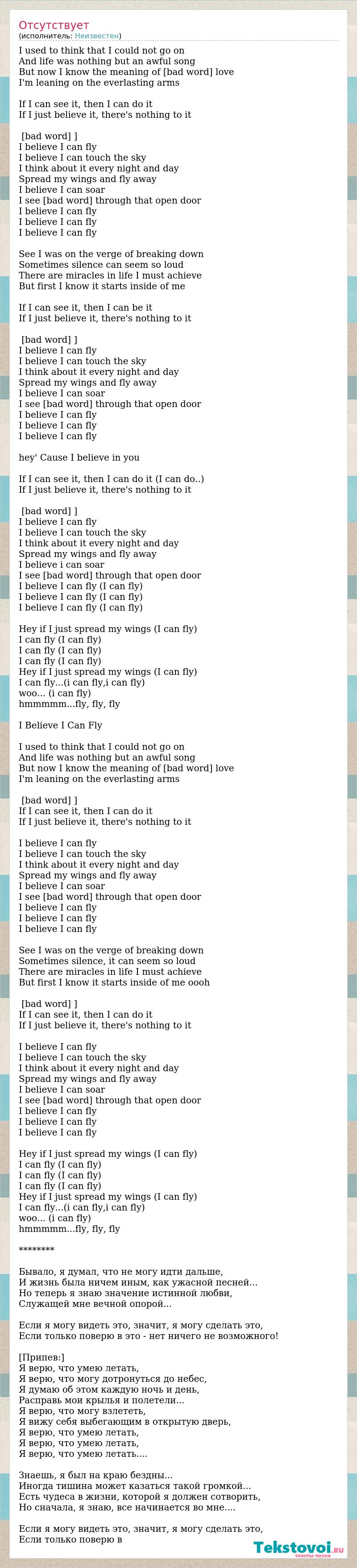 Я верю, что могу взлететь,