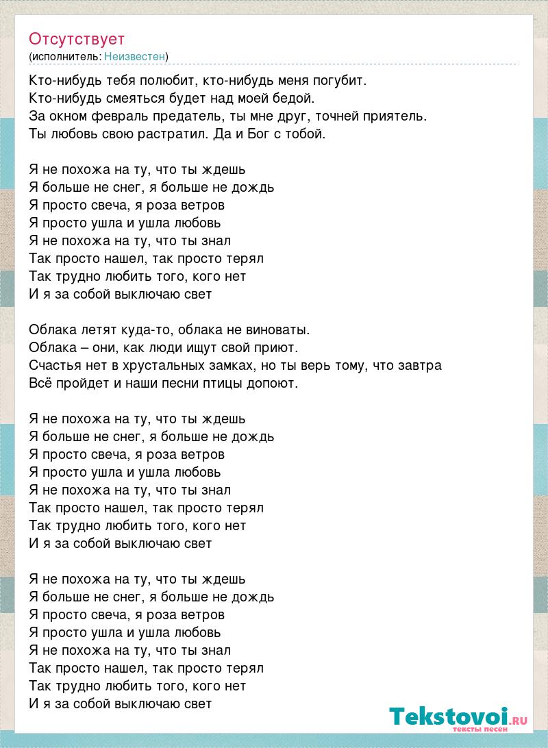 Кто-нибудь тебя полюбит, кто-нибудь меня погубит.