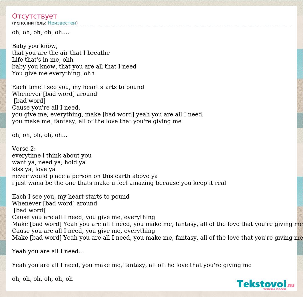 Make [bad word] Yeah you are all I need, you make me, fantasy, all of the love that you're giving me