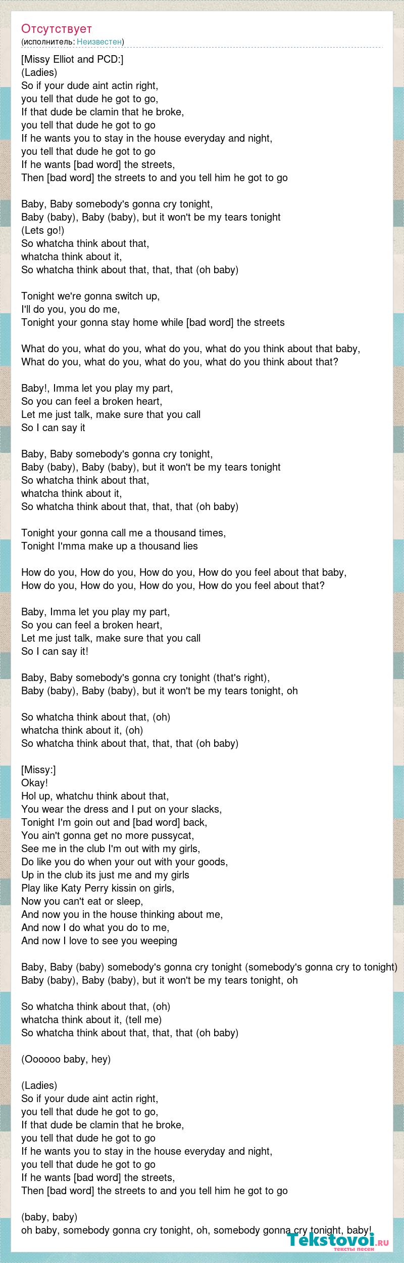 oh baby, somebody gonna cry tonight, oh, somebody gonna cry tonight, baby!