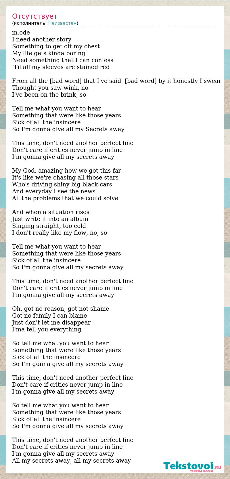 From all the [bad word] that I've said  [bad word] by it honestly I swear