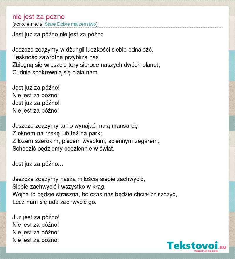 nie jest za pozno (исполнитель: Stare Dobre malzenstwo)
