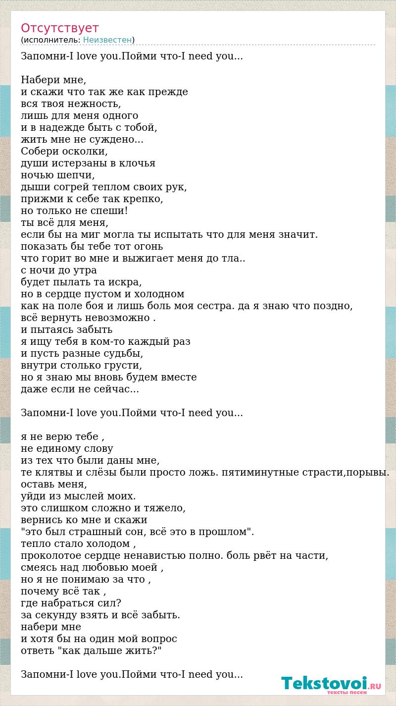Запомни-I love you.Пойми что-I need you...