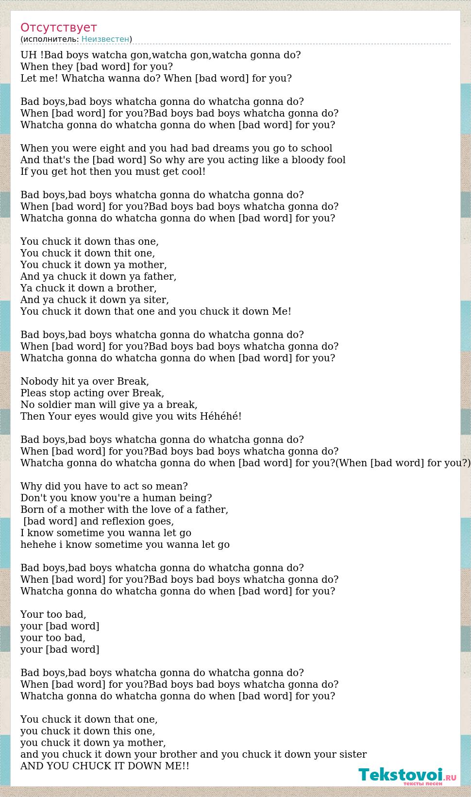 When [bad word] for you?Bad boys bad boys whatcha gonna do?