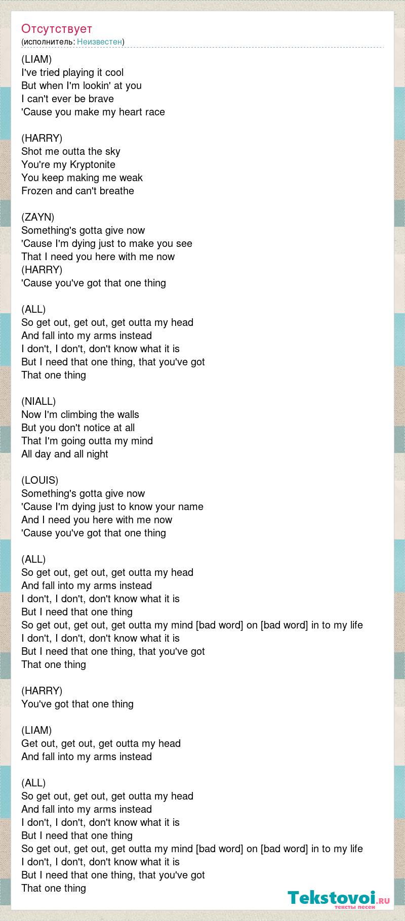 So get out, get out, get outta my head