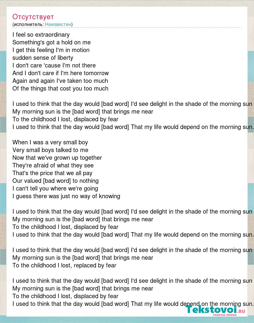 I used to think that the day would [bad word] That my life would depend on the morning sun.