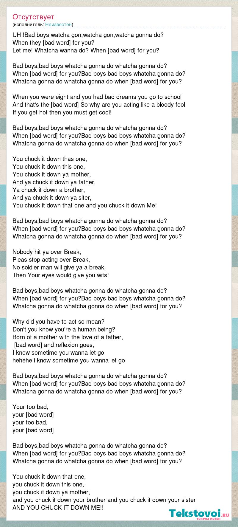 When [bad word] for you?Bad boys bad boys whatcha gonna do?