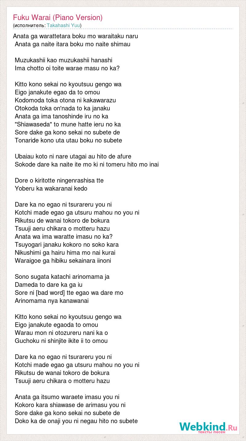 Fuku Warai (Piano Version) (исполнитель: Takahashi Yuu)