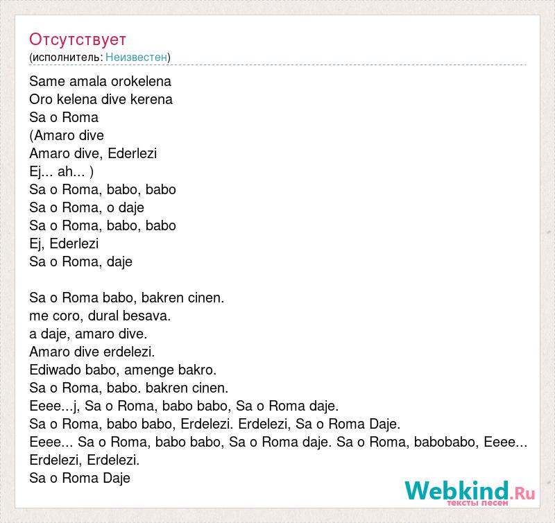 Eeee... Sa o Roma, babo babo, Sa o Roma daje. Sa o Roma, babobabo, Eeee...
