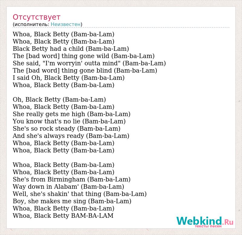 I said Oh, Black Betty (Bam-ba-Lam)
