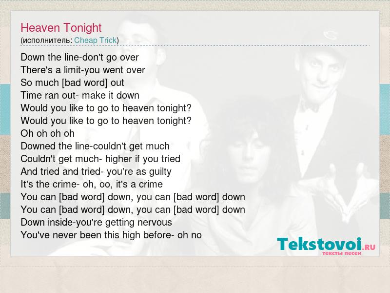 Heaven Tonight (исполнитель: Cheap Trick)