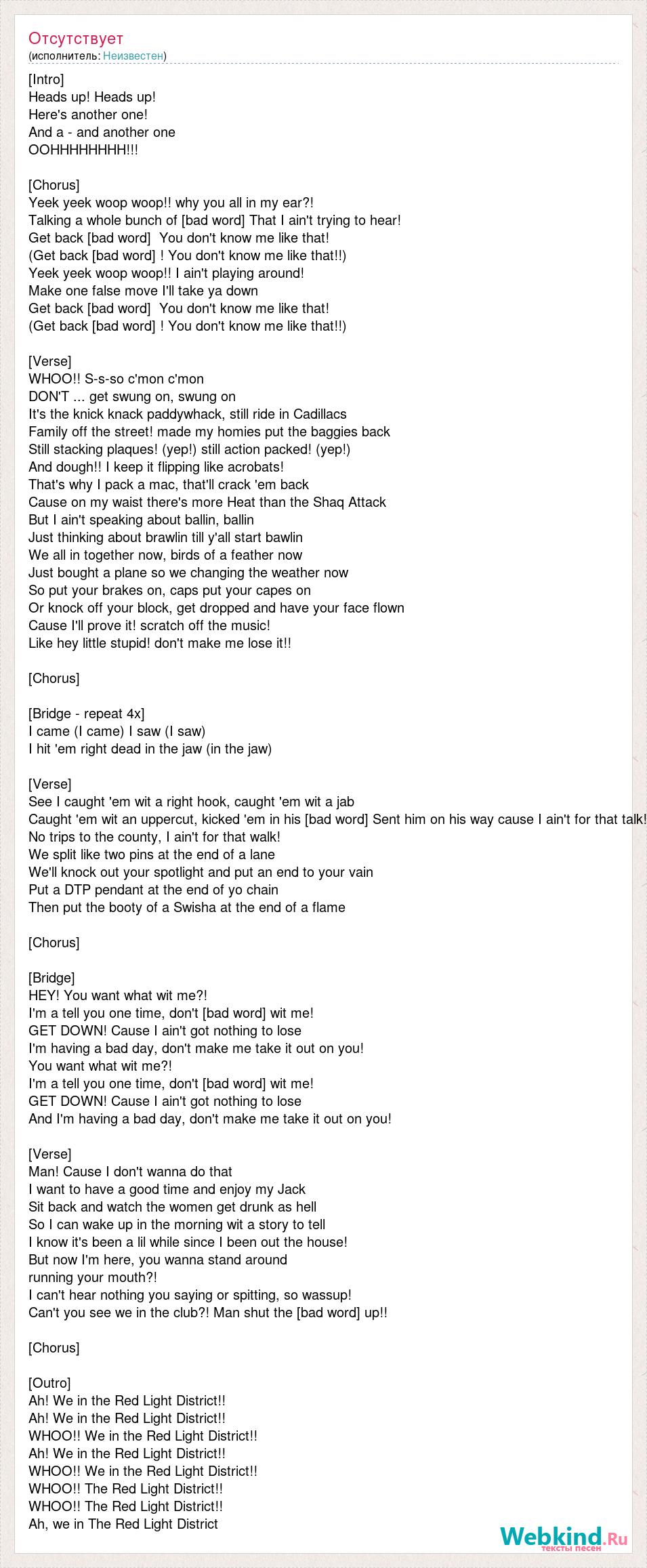 (Get back [bad word] ! You don't know me like that!!)