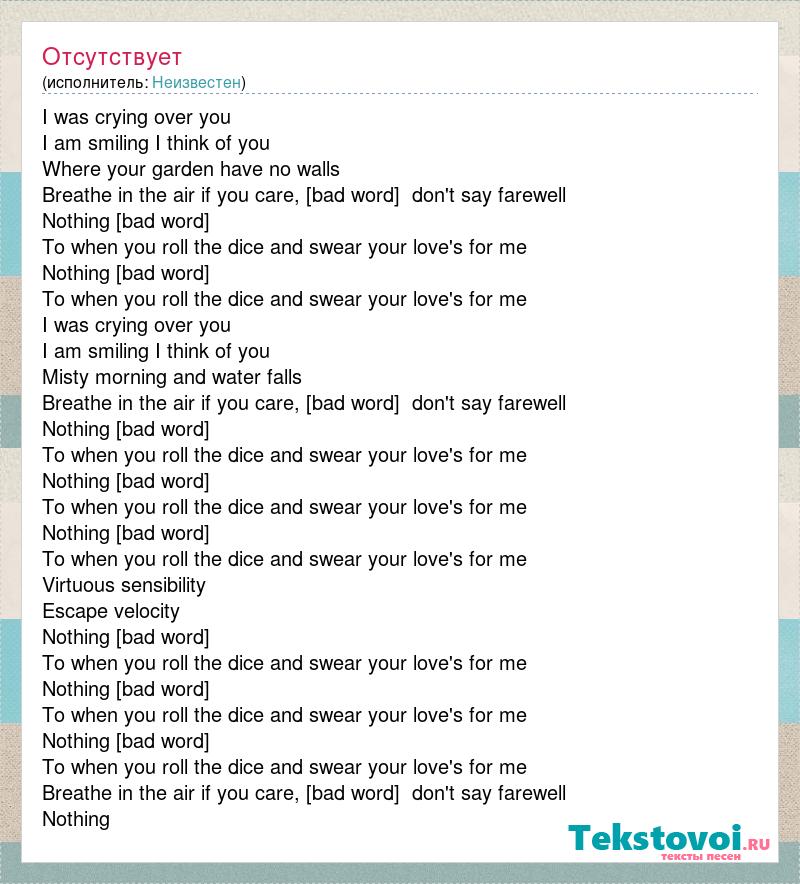 Breathe in the air if you care, [bad word]  don't say farewell
