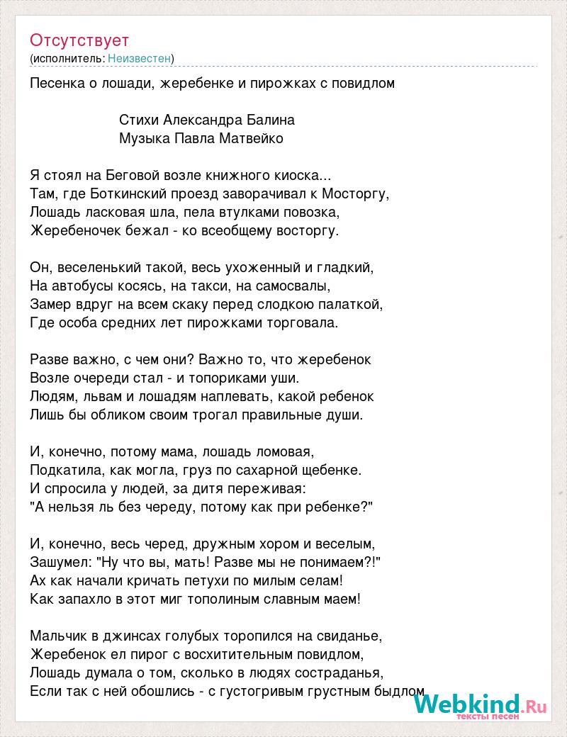 Песенка о лошади, жеребенке и пирожках с повидлом