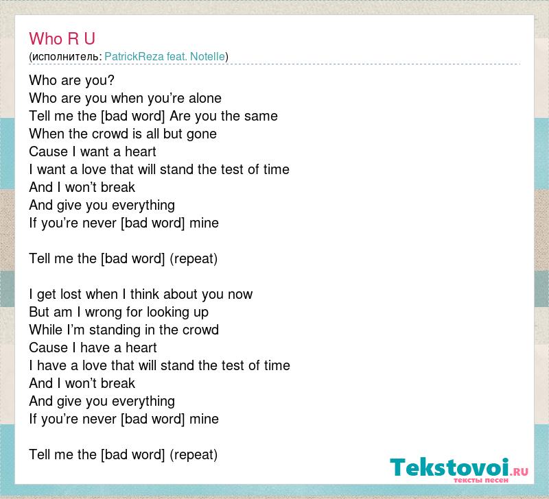 Who R U (исполнитель: PatrickReza feat. Notelle)