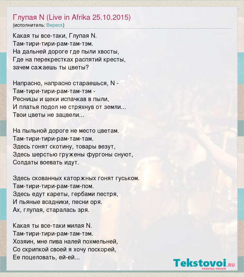 Глупая N (Live in Afrika 25.10.2015) (исполнитель: Вереск)