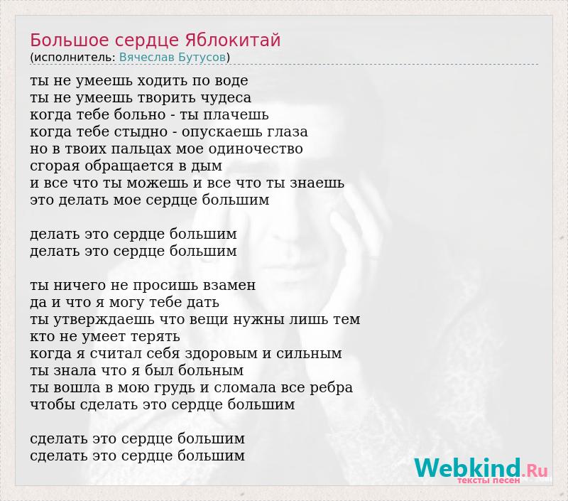 Большое сердце Яблокитай (исполнитель: Вячеслав Бутусов)