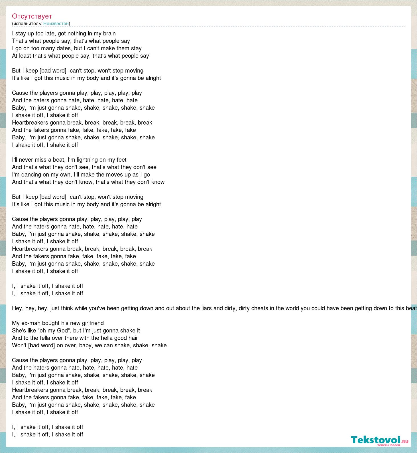 Won't [bad word] on over, baby, we can shake, shake, shake