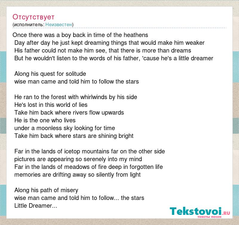 But he wouldn't listen to the words of his father, 'cause he's a little dreamer