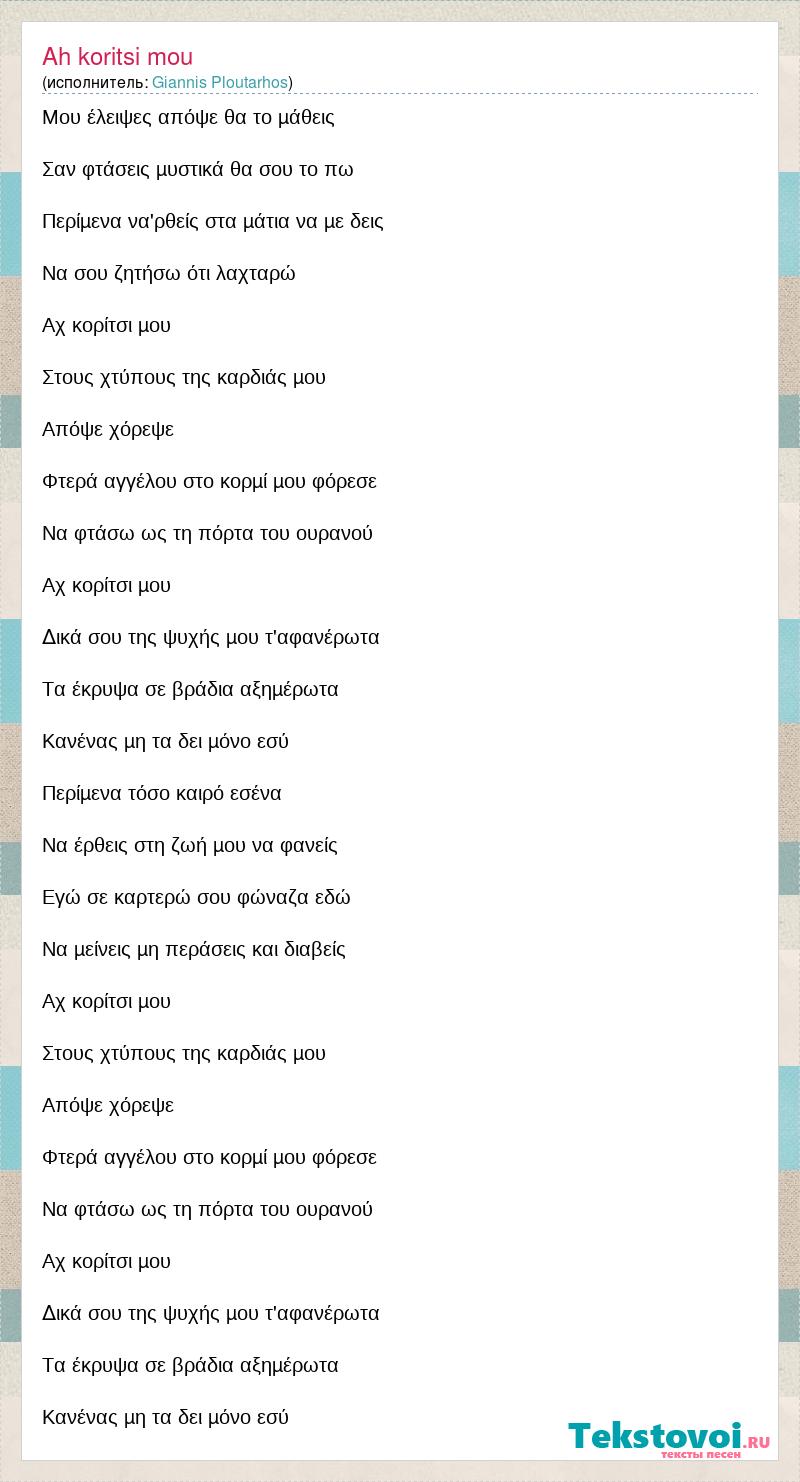 Ah koritsi mou (исполнитель: Giannis Ploutarhos)