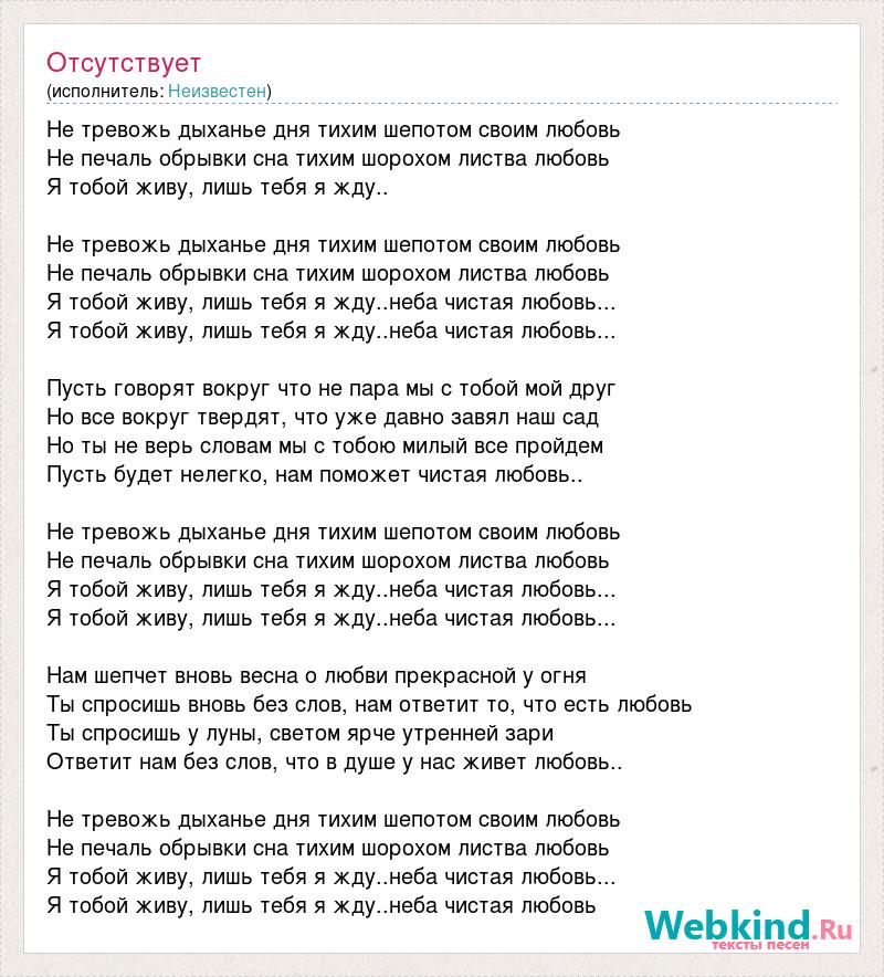Я тобой живу, лишь тебя я жду..неба чистая любовь...