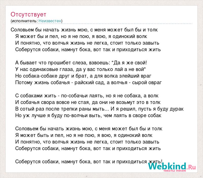 Я может быть и пел, но я не пою, я вою, я одинокий волк
