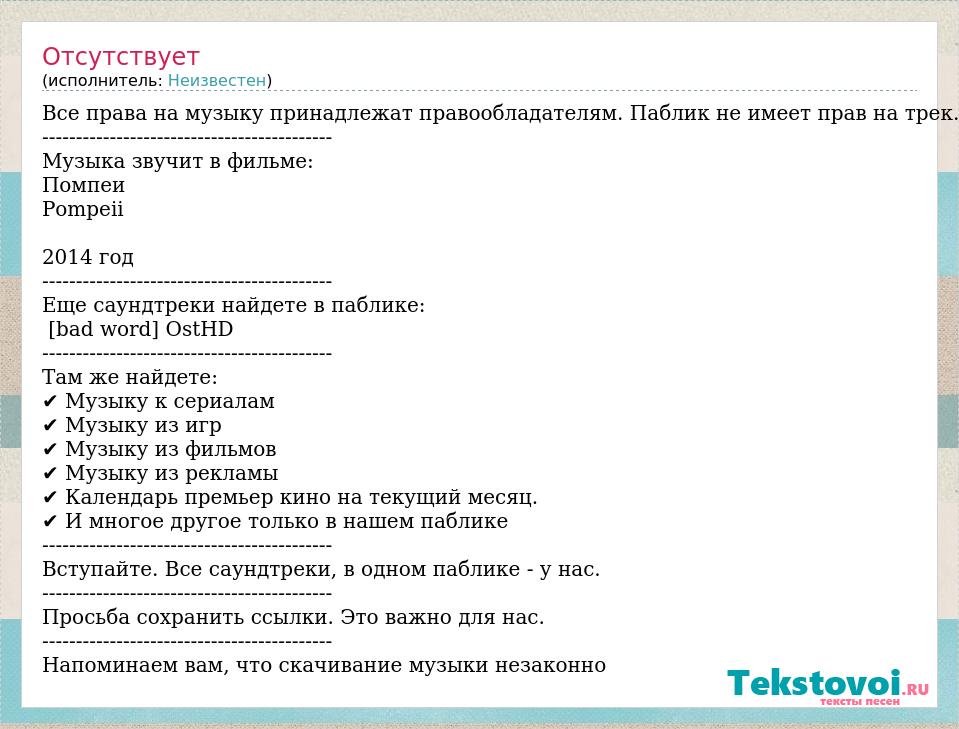 Все права на музыку принадлежат правообладателям. Паблик не имеет прав на трек.
