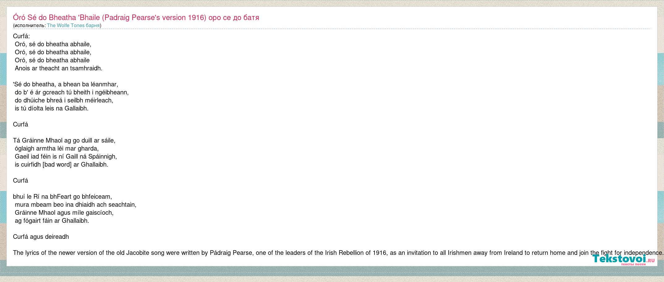 Óró Sé do Bheatha 'Bhaile (Padraig Pearse's version 1916) оро се до батя (исполнитель: The Wolfe Tones барня)