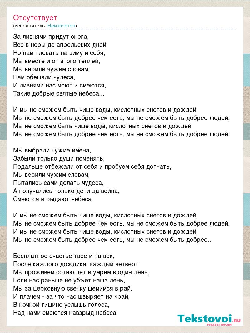 И мы не сможем быть чище воды, кислотных снегов и дождей,