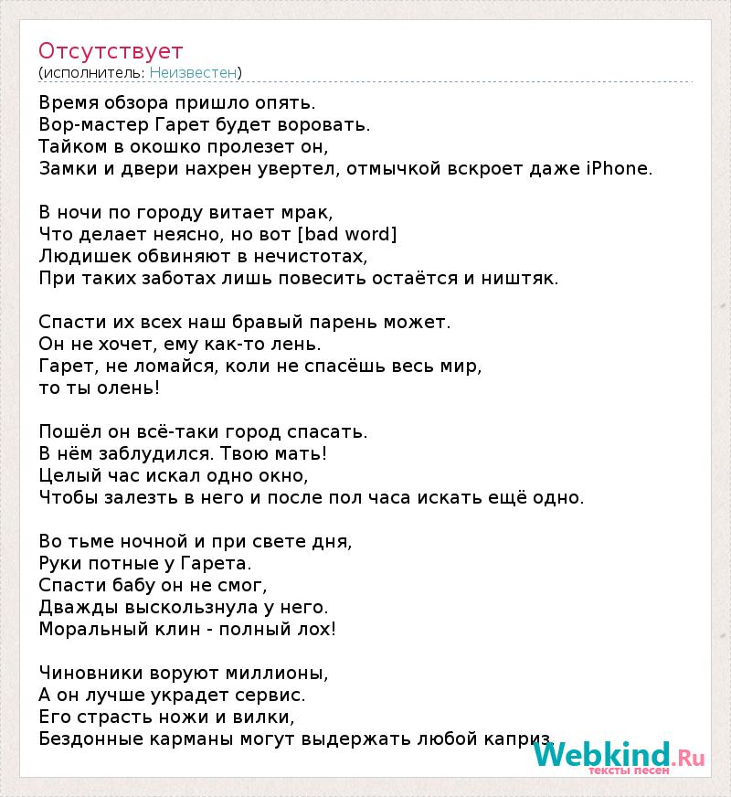 Время обзора пришло опять. Вор-мастер Гарет будет воровать. Тайком в окошко пролезет он, Замки и двери нахрен увертел, отмычкой вскроет даже iPhone. В ночи по городу витает мрак, Что делает неясно, но вот [bad word] Людишек обвиняют в нечистотах, При таких заботах лишь повесить остаётся и ништяк. Спасти их всех наш бравый парень может. Он не хочет, ему как-то лень. Гарет, не ломайся, коли не спасёшь весь мир, то ты олень! Пошёл он всё-таки город спасать. В нём заблудился. Твою мать! Целый час искал одно окно, Чтобы залезть в него и после пол часа искать ещё одно. Во тьме ночной и при свете дня, Руки потные у Гарета. Спасти бабу он не смог, Дважды выскользнула у него. Моральный клин - полный лох! Чиновники воруют миллионы, А он лучше украдет сервис. Его страсть ножи и вилки, Бездонные карманы могут выдержать любой каприз.
