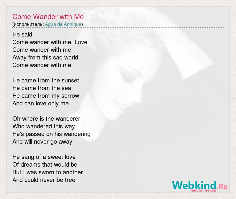 He [bad word] wander with me, [bad word] wander with me Away from this sad [bad word] wander with me He came from the sunset He came from the sea He came from my sorrow And can love only me Oh where is the wanderer Who wandered this way He's passed on his wandering And will never go away He sang of a sweet love Of dreams that would be But I was sworn to another And could never be free