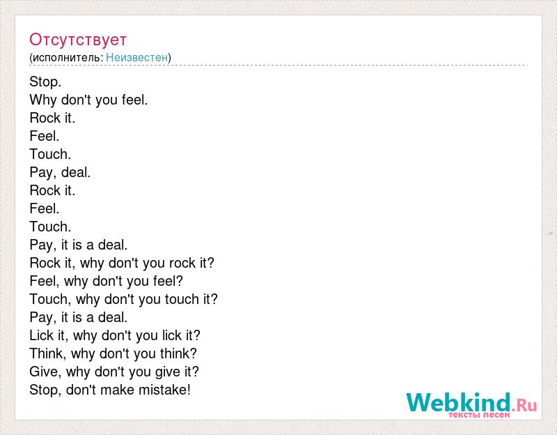Feel, why don't you feel?