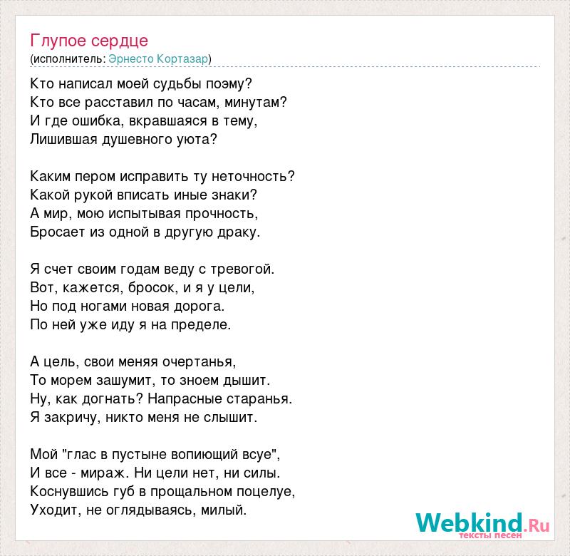 Глупое сердце (исполнитель: Эрнесто Кортазар)