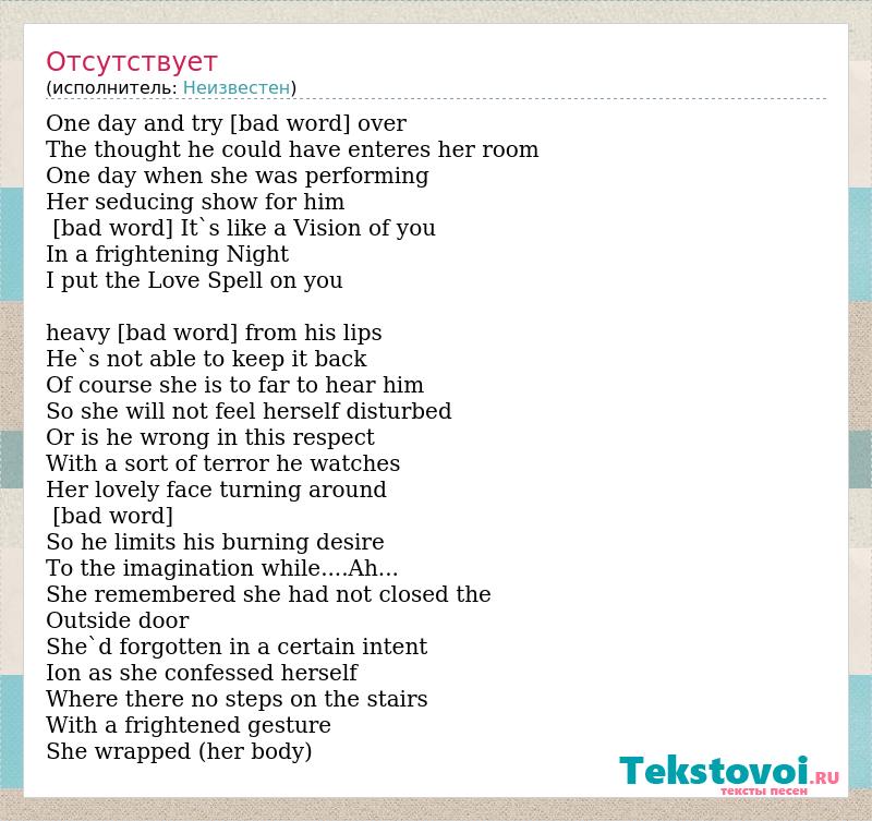 One day and try [bad word] over The thought he could have enteres her room One day when she was performing Her seducing show for him [bad word] It`s like a Vision of you In a frightening Night I put the Love Spell on you heavy [bad word] from his lips He`s not able to keep it back Of course she is to far to hear him So she will not feel herself disturbed Or is he wrong in this respect With a sort of terror he watches Her lovely face turning around [bad word] So he limits his burning desire To the imagination while....Ah... She remembered she had not closed the Outside door She`d forgotten in a certain intent Ion as she confessed herself Where there no steps on the stairs With a frightened gesture She wrapped (her body)