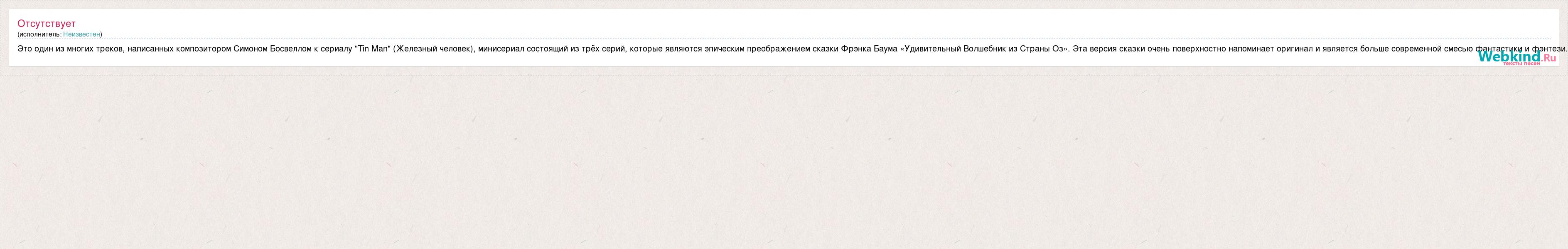 Это один из многих треков, написанных композитором Симоном Босвеллом к сериалу "Tin Man" (Железный человек), минисериал состоящий из трёх серий, которые являются эпическим преображением сказки Фрэнка Баума «Удивительный Волшебник из Страны Оз». Эта версия сказки очень поверхностно напоминает оригинал и является больше современной смесью фантастики и фэнтези.
