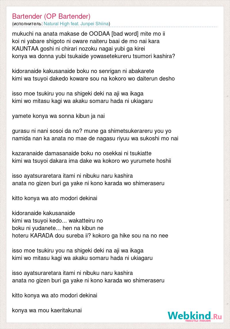 Bartender (OP Bartender) (исполнитель: Natural High feat. Junpei Shiina)
