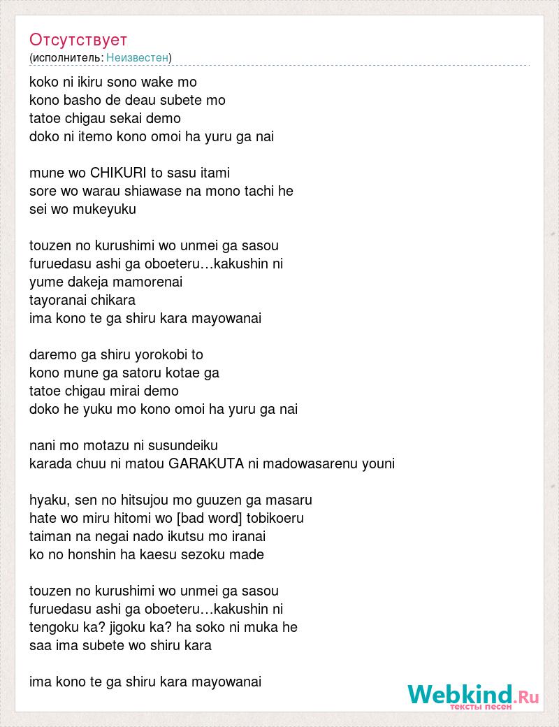 doko he yuku mo kono omoi ha [bad word] ga nai