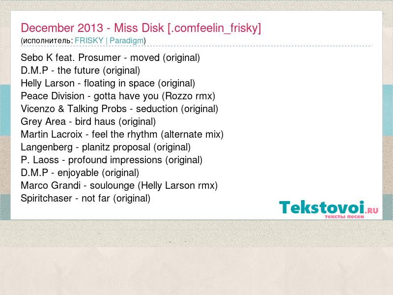 December 2013 - Miss Disk [.comfeelin_frisky] (исполнитель: FRISKY | Paradigm)