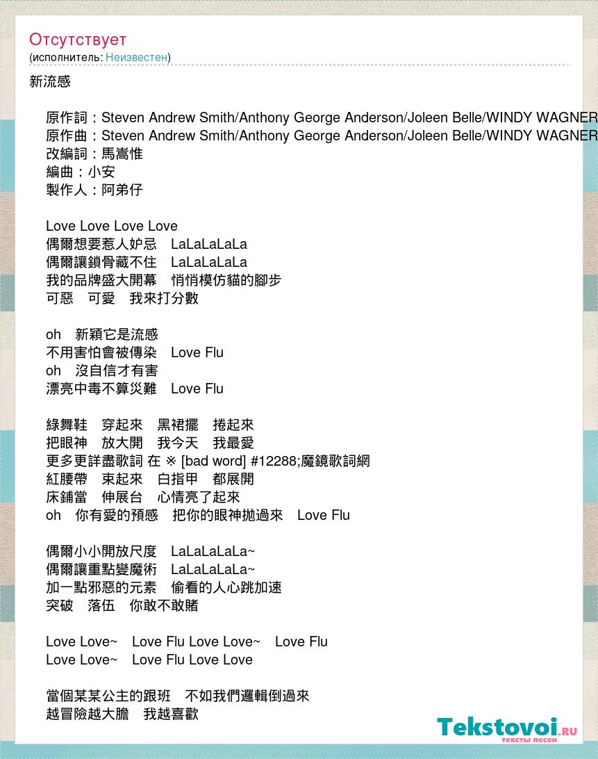 oh 你有愛的預感 把你的眼神拋過來 Love Flu