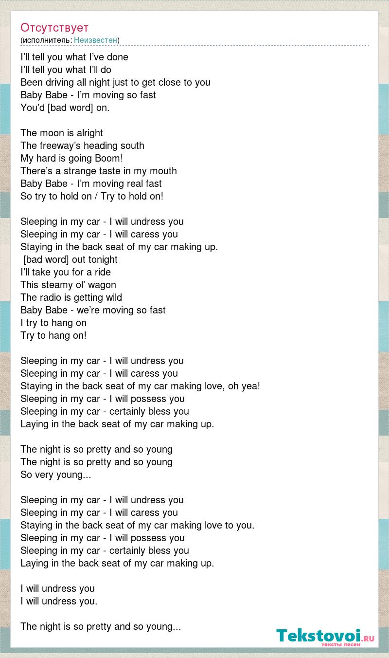 Sleeping in my car - I will undress you