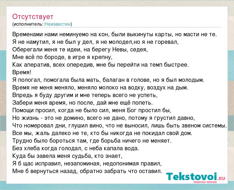 Время не меня меняло, меняло молоко на водку, воздух на дым.