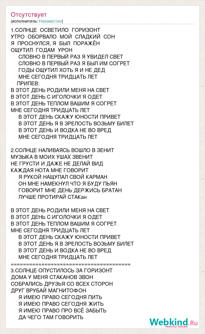 МНЕ СЕГОДНЯ ТРИДЦАТЬ ЛЕТ