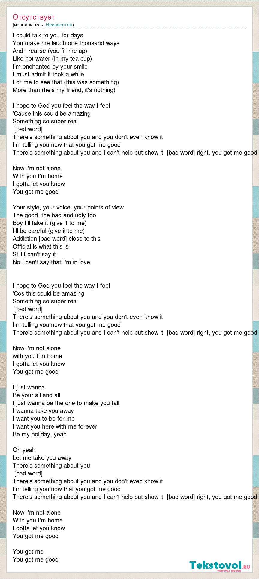 There's something about you and I can't help but show it  [bad word] right, you got me good