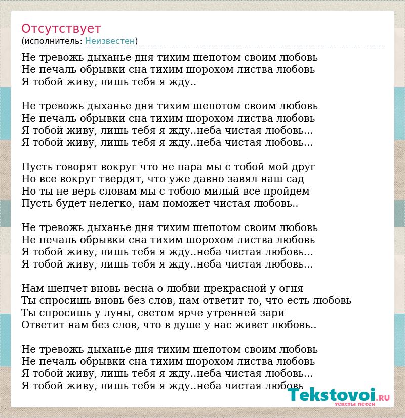 Не тревожь дыханье дня тихим шепотом своим любовь