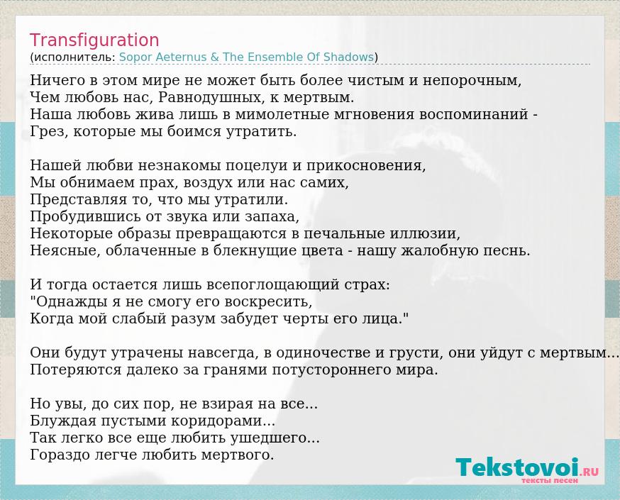 Transfiguration (исполнитель: Sopor Aeternus & The Ensemble Of Shadows)